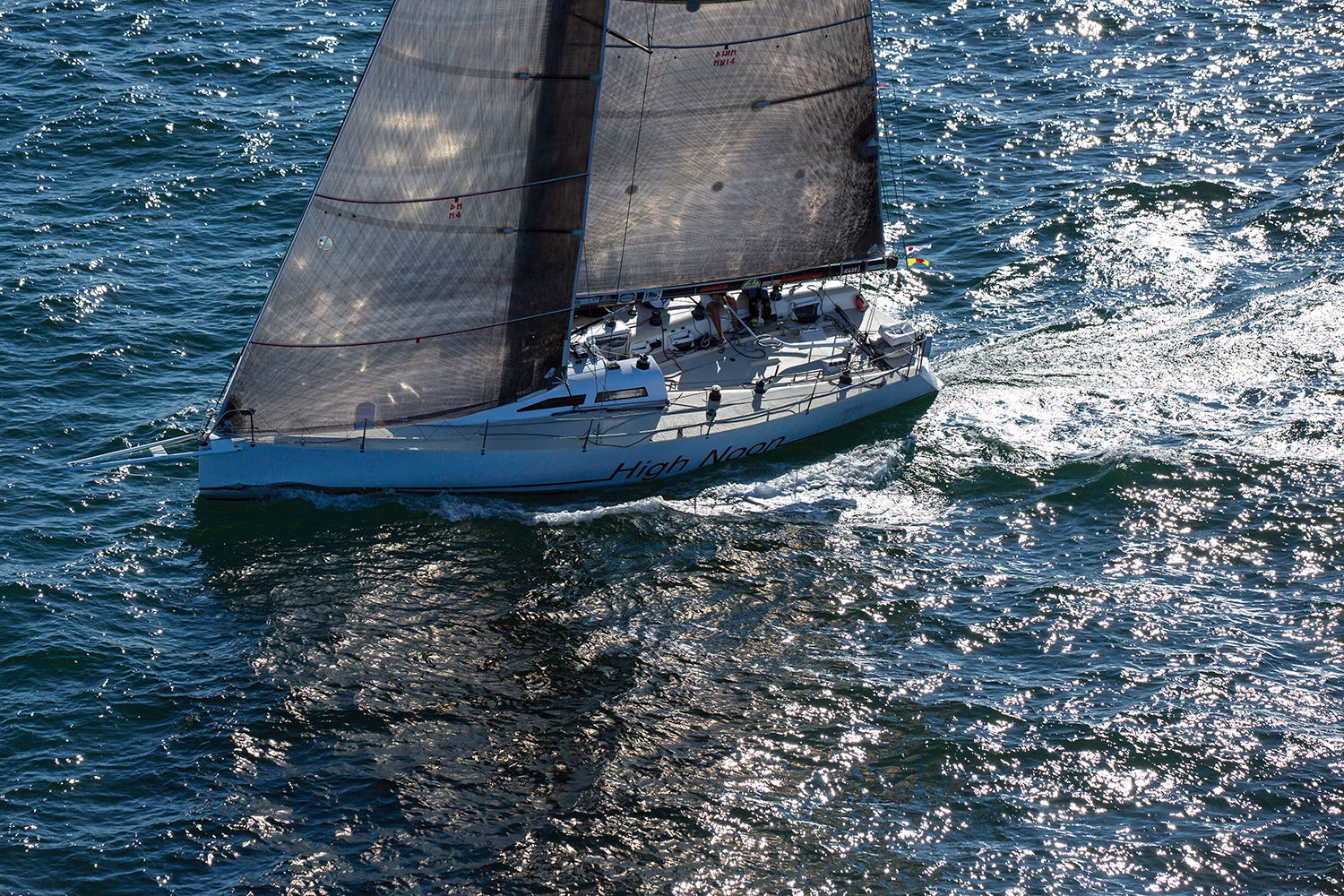 The optimization work done on High Noon consisted of an IRC-friendly rig. A new spar replaced the old IMS alloy rig; removing the need for runners thus providing a simpler and stiffer platform. Sail areas were re-distributed to rate better and speed up the boat. A new keel was fitted to improve the righting moment and pointing ability. The last modification was to use a fixed bow sprit as a trade off for larger spinnakers. Stephane Leveel, Tripp Design’s head designer on this conversion, stated, “This first IRC event confirms our faith in the new rating rule and demonstrates our good understanding of it."